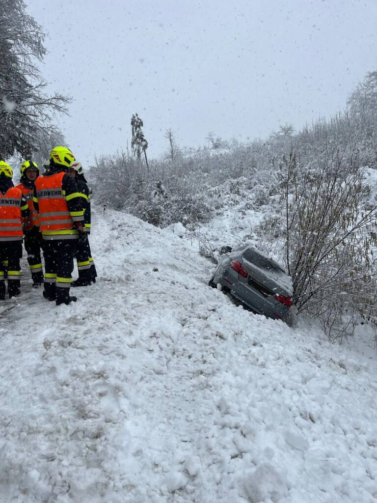 Wir stehen weiterhin unermüdlich im Dauereinsatz mit allen Fahrzeugen. Im gesamten Gemeindegebiet kommt es laufend zu Baumbergungen, teils in sehr gefährlichen Situationen, sowie zu einigen Fahrzeugbergungen. Zusätzlich erschweren Schneeverwehungen in exponierten Lagen von bis zu einem Meter die Lage erheblich. Derzeit können nur die Hauptverkehrswege freigemacht werden.