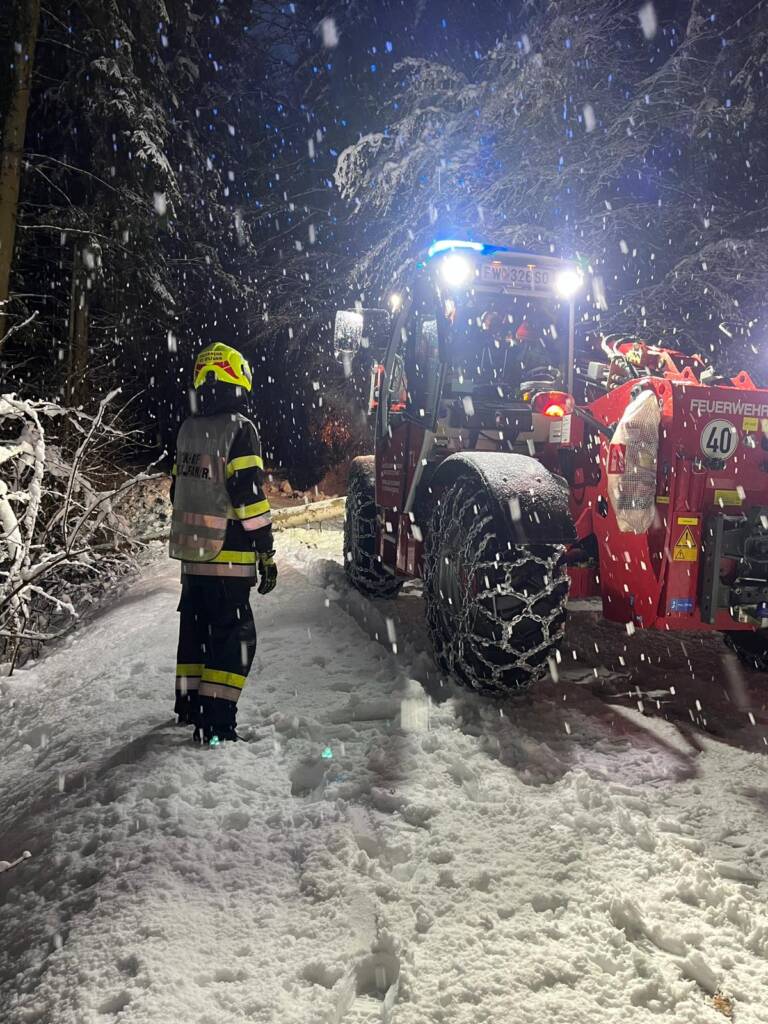 Nach einer kurzen Verschnaufpause folgte um 05:11 Uhr der nächste Sirenenalarm. Mehrere Bäume sind durch die enorme Schneelast gebrochen und umgestürzt. In mehreren Bereichen kam es dadurch auch zu gefährlichen Situationen. Aufgrund von Bäumen auf Stromleitung waren auch einige Haushalte ohne Strom. Bis jetzt haben wir bereits 8 Einsatzadressen abgearbeitet. Aufgrund der aktuell sehr hohen Gefahr durch Schneebruch und dem weiterhin anhaltenden Schneefall sind wir nun wieder in das Feuerwehrhaus eingerückt, um für Einsätze mit Gefahr in Verzug jederzeit rasch ausrücken zu können.