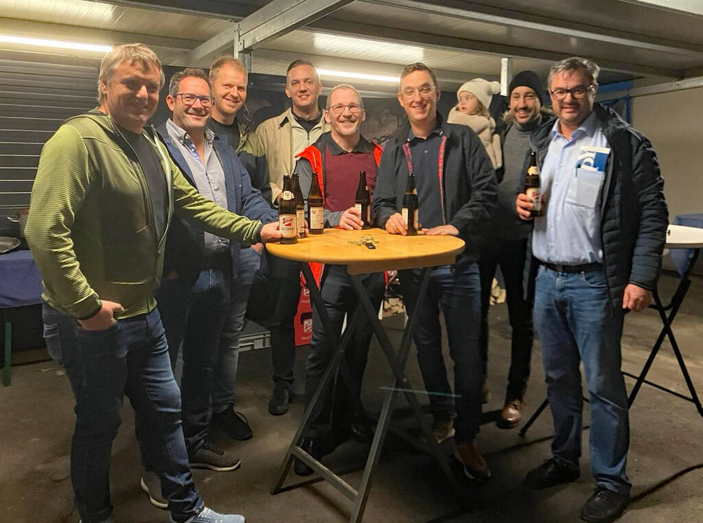 Das Kommando, Mitglieder des Feuerwehrausschusses und der FW-Jugend gratulierten dem Beauftragten für die FW-Jugend zu seinem besonderen Geburtstagsjubiläum. Ein bisschen Halloween musste auch sein.