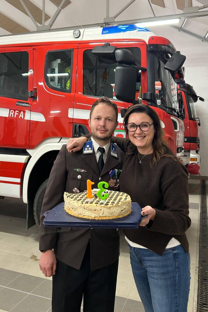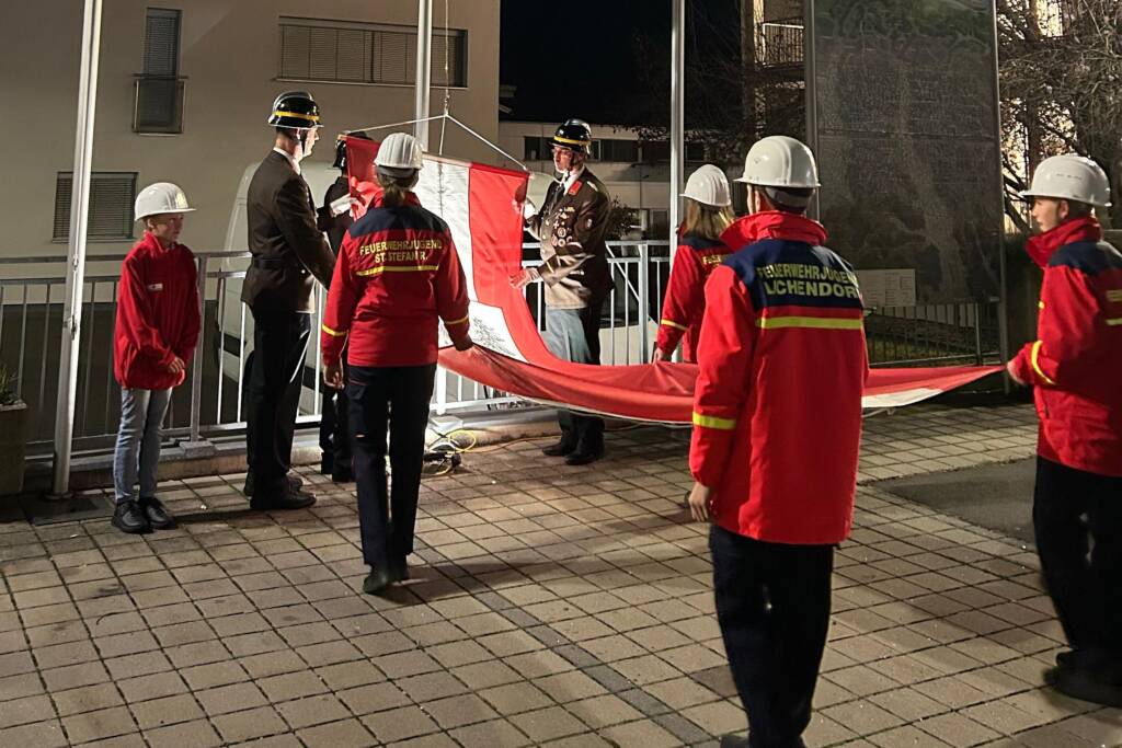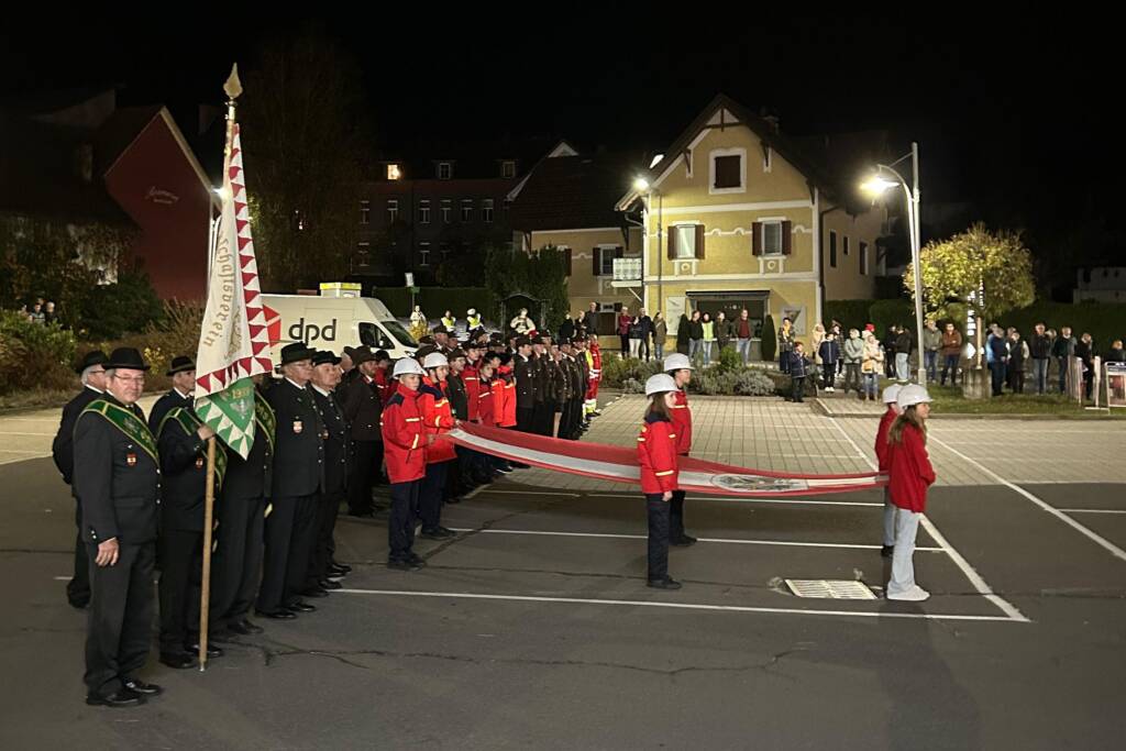 Heuer stand die Flaggenparade unter dem Kommando von OLM d.V. Dipl. Ing. Marcel Weinhandl, MSc, BSc, der am 25. Oktober seinen Geburtstag feierte. Aus diesem Grund lud er im Nachhinein zur Jause der Feuerwehr im FW-Haus, zum Getränk ein. Eine sehr schöne kameradschaftliche Geste, der viele Mitglieder gefolgt sind. Eine Torte verriet seine jugendliche Reife.