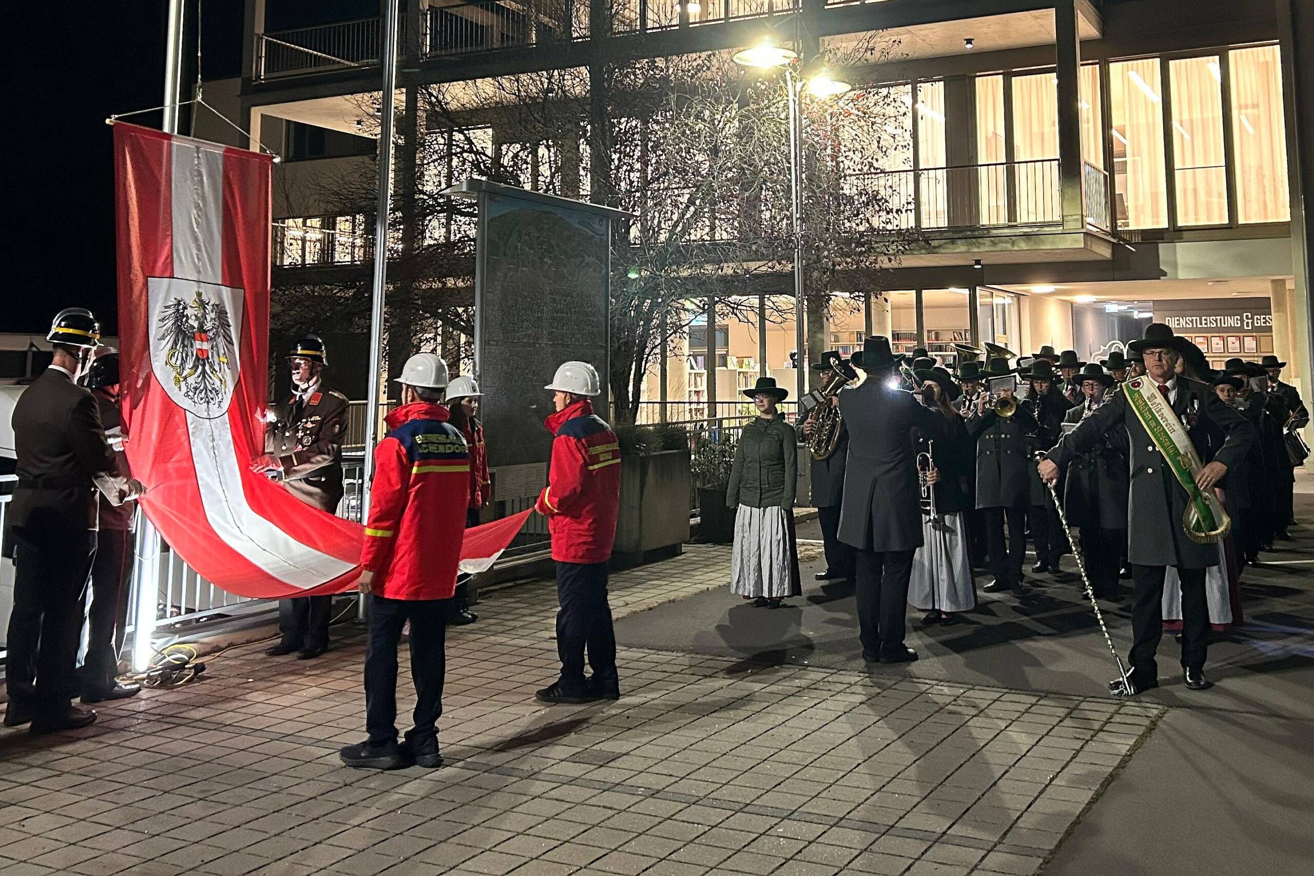 Auch heuer wurden am Vorabend zum Nationalfeiertag, seitens der Marktgemeinde die Vereine und Körperschaften zu einem gemeinsamen Kirchgang mit anschließender Flaggenparade eingeladen.