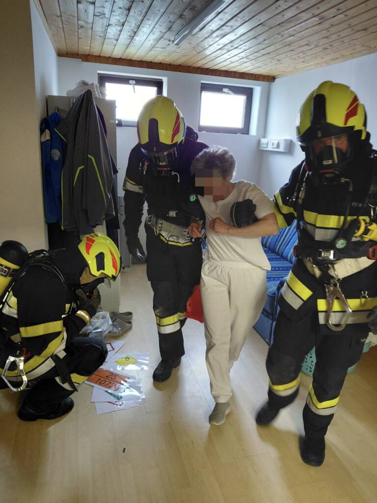 Dank der schnellen und effizienten Zusammenarbeit konnten mehrere vermisste Personen aufgefunden und dem RK übergeben werden. Der ATS-Trupp fand die Ursache der Situation: Eine ausgetretene medizinische Sauerstoffflasche, die als gefährlich eingestuft wurde.