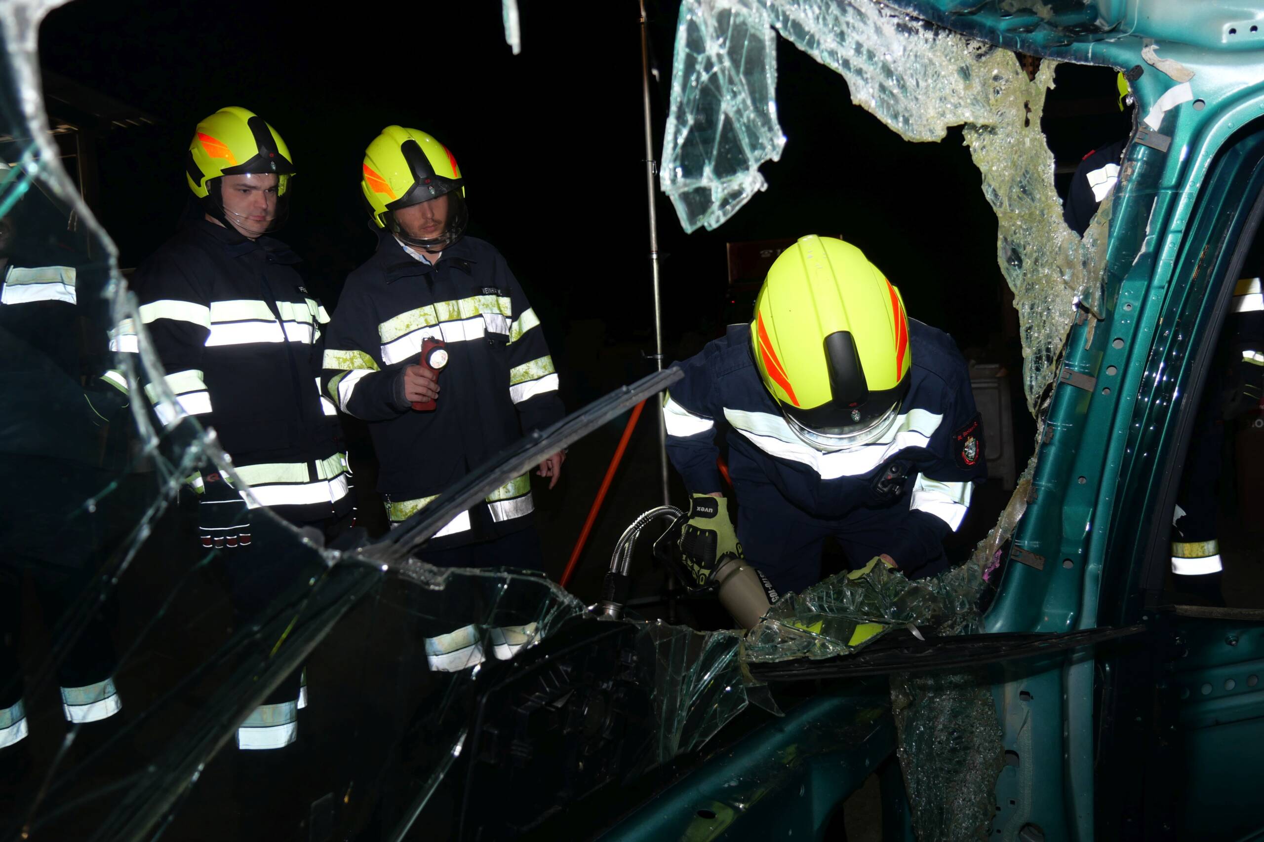 Mit den Einsatzfahrzeugen wurde zum Übungsort verlegt, ein Einsatzleiter eingeteilt und Schrittweise die Positionen, vom Inneren Retter, Schaffung von Zugängen und Retten der Insassen bis hin zu den Schnitttechniken abgearbeitet. Die Sicherheit stand an oberster Stelle, jede(r) sollte mit dem hydraulischen Rettungsgerät arbeiten und bei den anderen Ausrüstungen Hand anlegen. Zwischen den einzelnen Schritten gab es vom ÜL immer wieder Erklärungen, z.B. die Einbindung des FW-Einsatztabletts, das sich im RF-A befindet. Der Einsatzleiter hatte die Aufgabe die Rettungskarte für das Übungswrack zu finden und den Teilnehmer*innen die heiklen Stellen des Fahrzeuges zu erläutern. Beim LKW-Führerhaus wurden ebenso die Details (z.B. Sicherung) vor dem Einsatz des hydraulischen Rettungsgerätes besprochen. Aufgrund der instabilen Lage wurde für das praktische Schneiden und Drücken, zur Sicherheit das Führerhaus auf Bodenniveau gehoben. Beim letzten Schnitt wurde leider eine der Hydraulikleitungen beschädigt. Die Ausrüstung wird zur Grundüberholung zum Hersteller gebracht.