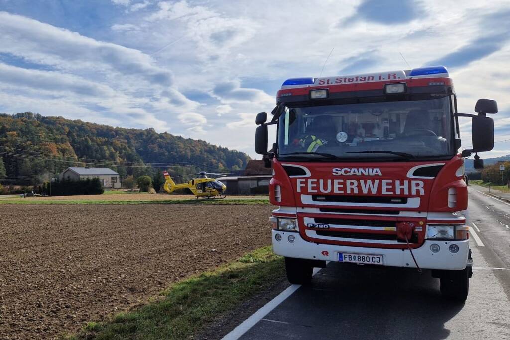 Unsere Kräfte staunten nicht schlecht, als bei der Anfahrt schon das Fluggeräusch des NA-Hubschrauber C12 zu hören war, der NAW aus Feldbach sowie der RTW des ÖRK von Kirchbach und 2 Motorradpolizisten vor Ort waren.