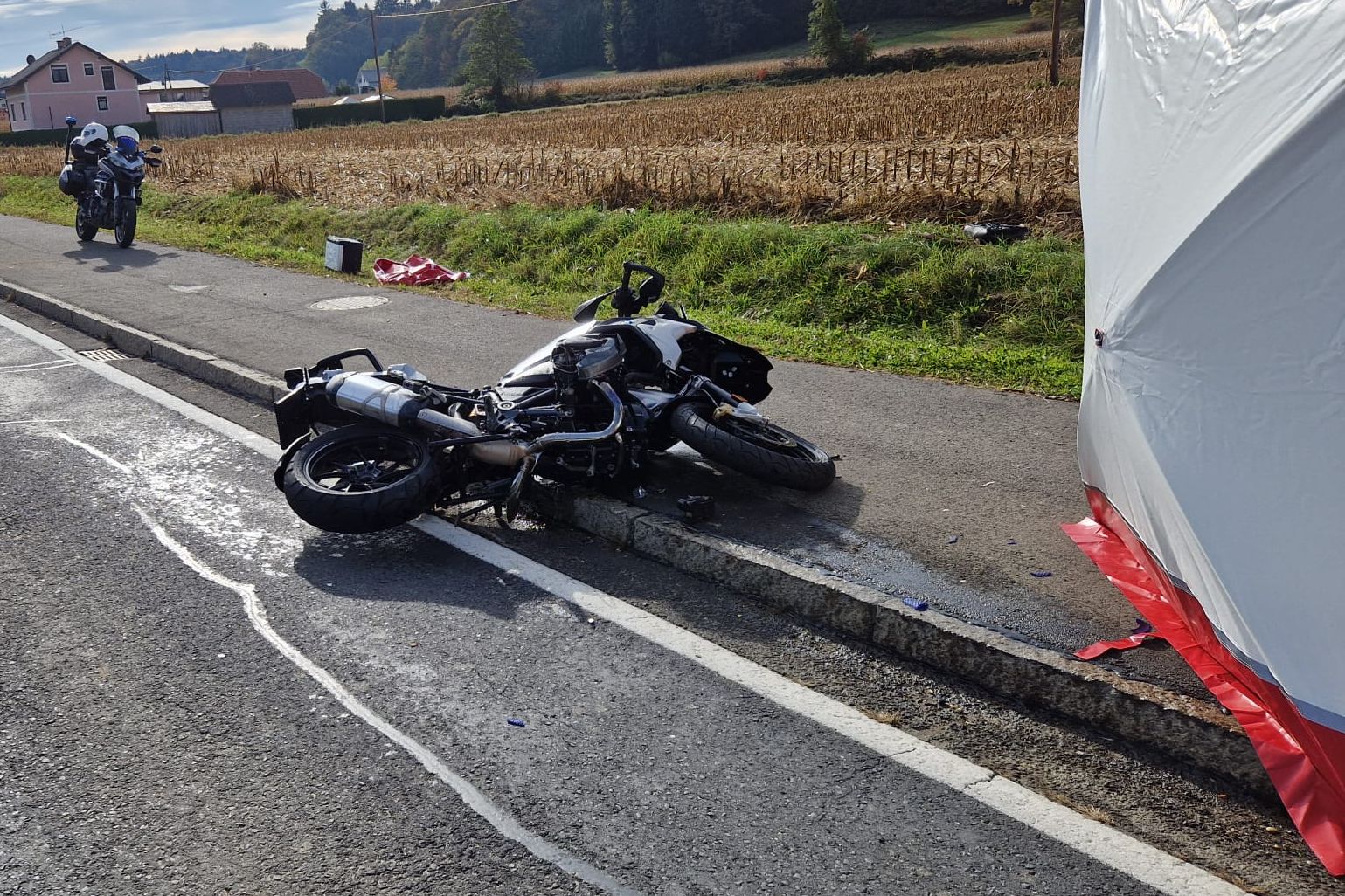 „SIRENENALARM um 14:11 Uhr – T03-VU-Berg.-Öl-Maiersdorf – Binden von Betriebsmittel nach VU Motorrad“ lautete die Alarmmeldung.